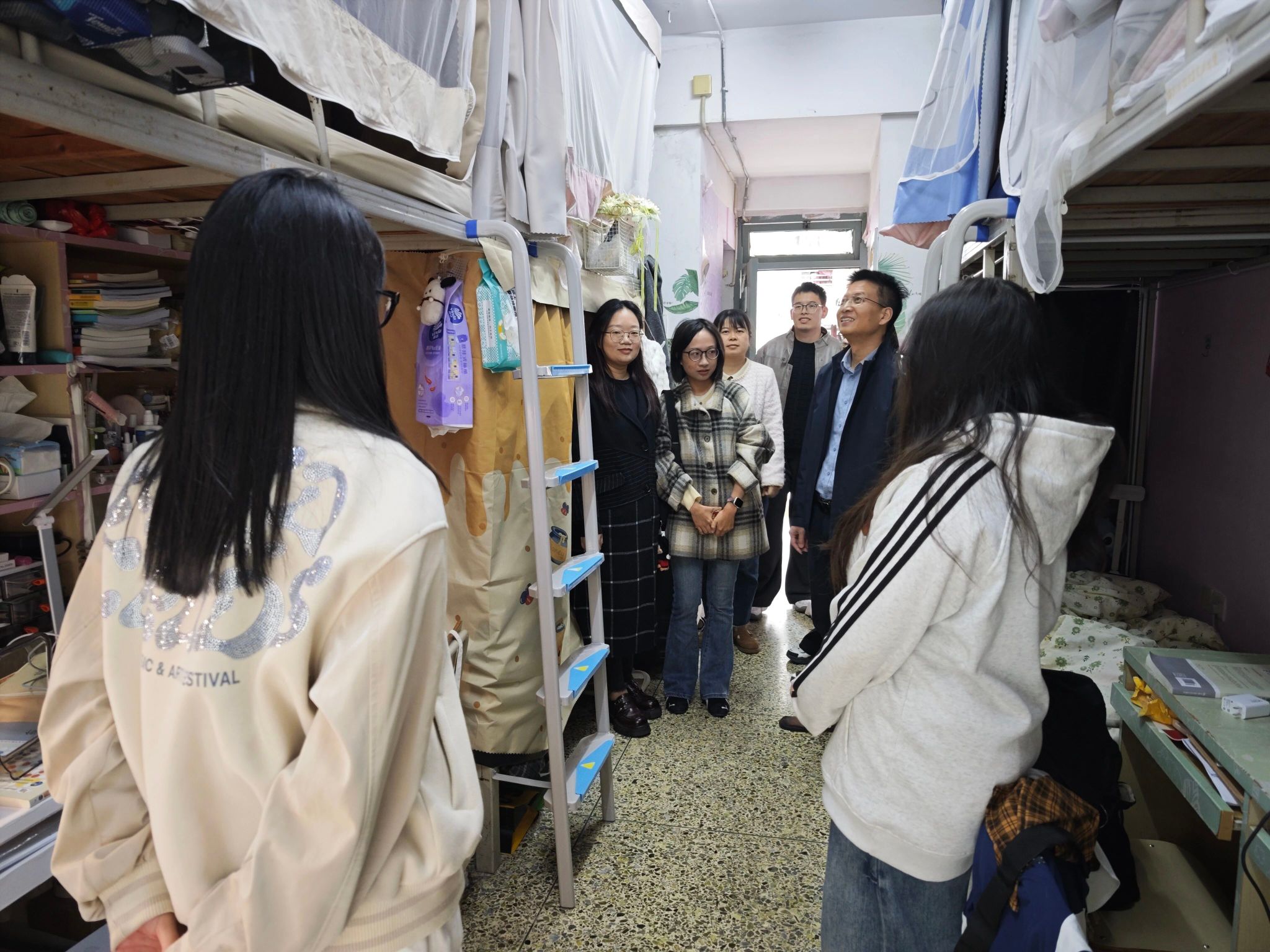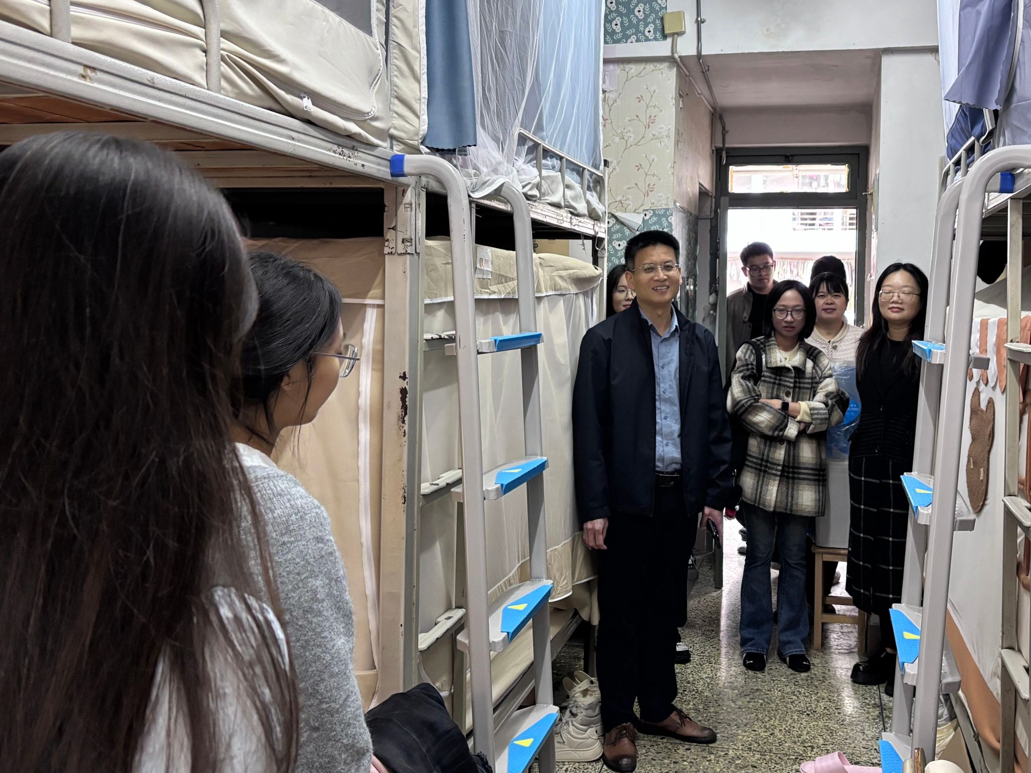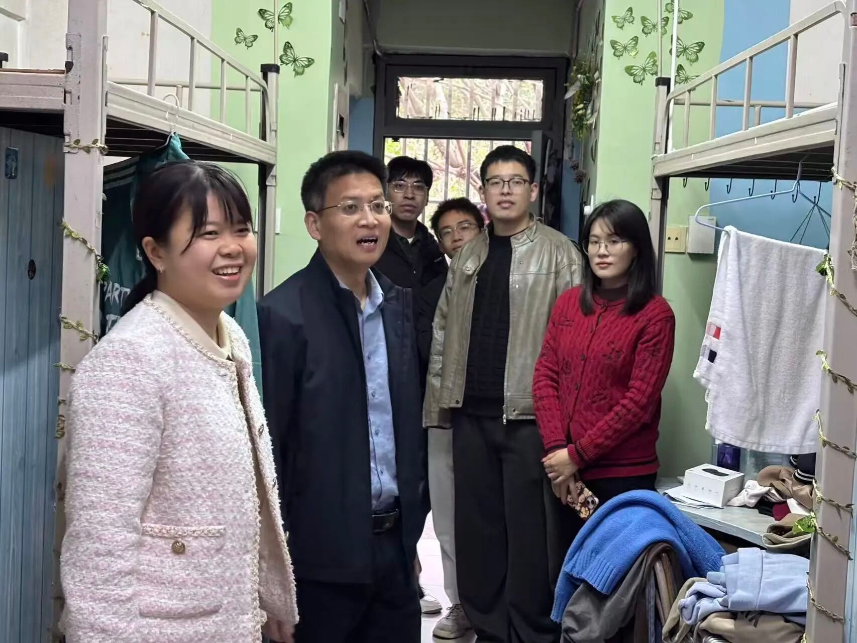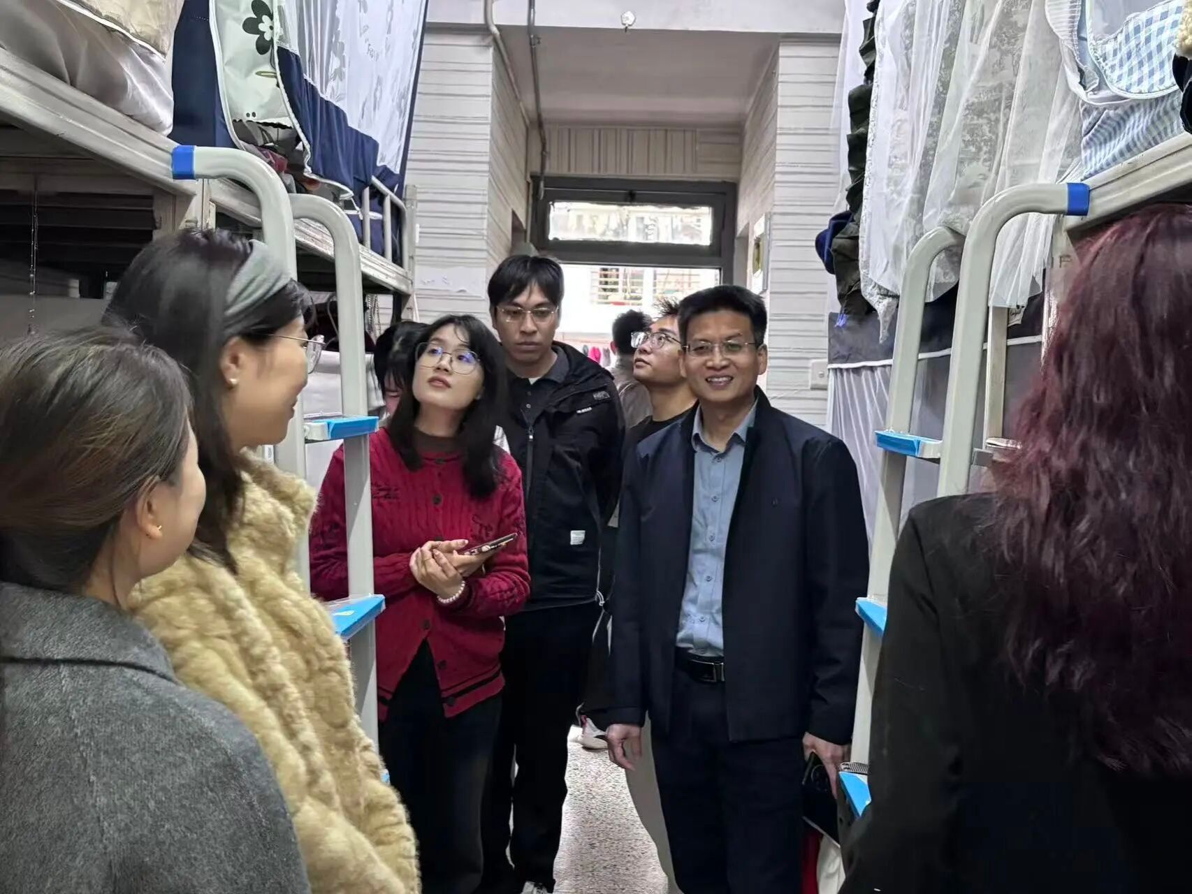 为持续深化“一站式”学生社区建设,筑牢期末校园安全防线,切实关心学生考前的学习生活状态,营造安全、整洁、温馨的宿舍氛围和期末备考环境,院党委副书记陈建漳带领各年级辅导员及各班班主任们深入学生宿舍,开展期末考前慰问与宿舍卫生、消防安全专项排查工作。