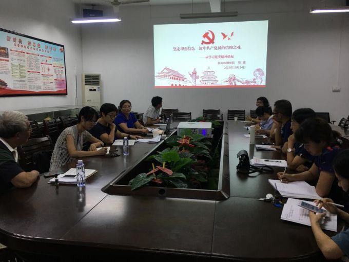 10月14日下午,新闻传播学院党委副书记张媛以《坚定理想信念,筑牢共产党员的信仰之魂——从学习延安精神谈起》为题,讲授“不忘初心、牢记使命”主题教育专题党课。参加党课的有新闻传播学院党委委员、教工党支部和学生党支部书记。