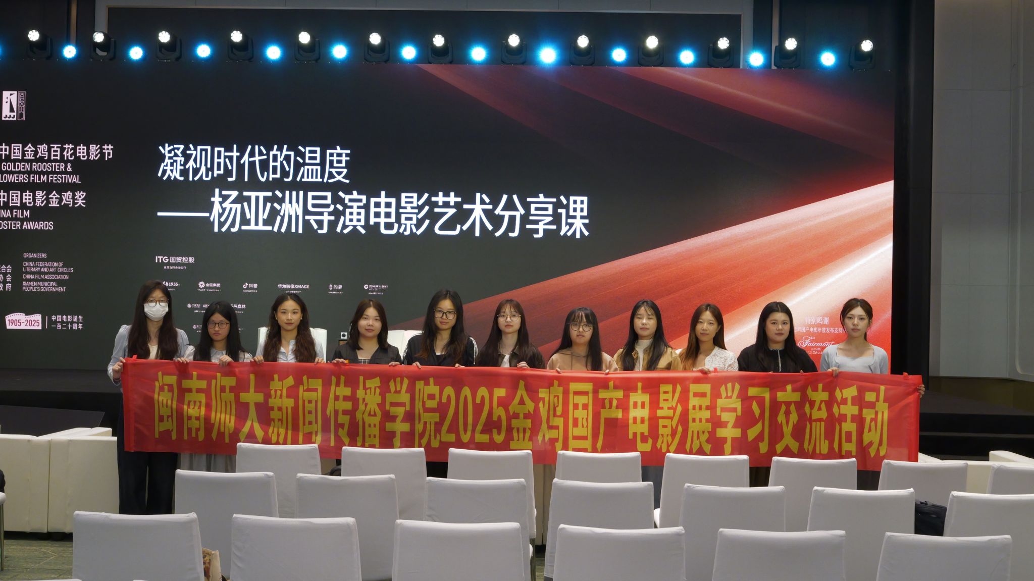11月13日上午,新闻传播学院师生赴第38届中国电影金鸡奖厦门会场,参与配套活动《凝视时代的温度——杨亚洲导演电影艺术分享课》。本次活动邀请国内资深导演杨亚洲,围绕影视创作理念与实践经验展开深度交流,为青年创作者带来一场关于影像表达、时代洞察与人文关怀的思想启迪,搭建起专业学习与行业实践的桥梁。