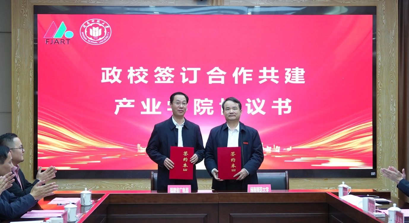 仪式上,福建省广播电视局与闽南师范大学签署共建海峡两岸微短剧产业学院合作协议,标志着双方在人才培养、平台共建、项目孵化等方面的合作迈入新阶段。