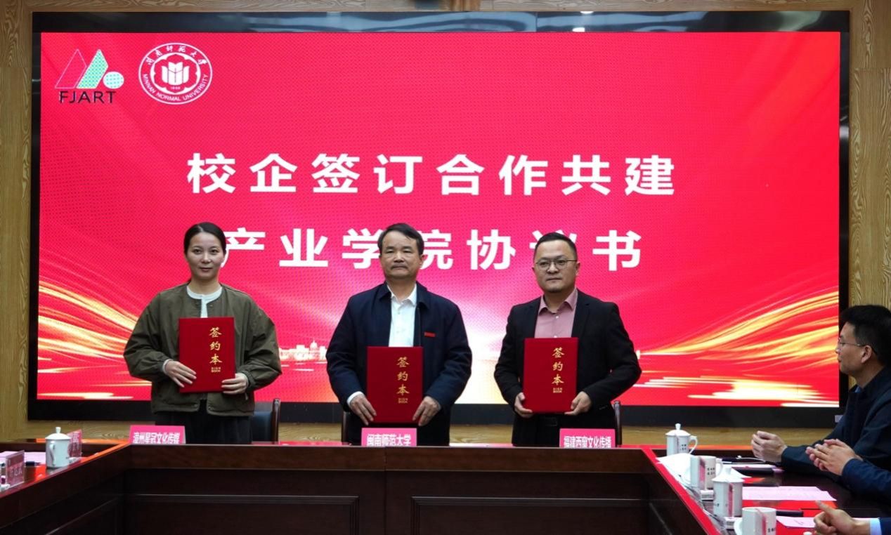 闽南师范大学分别与福建省西窗文化传播有限公司、漳州市星冠文化传媒有限公司签署共建产业学院协议。
