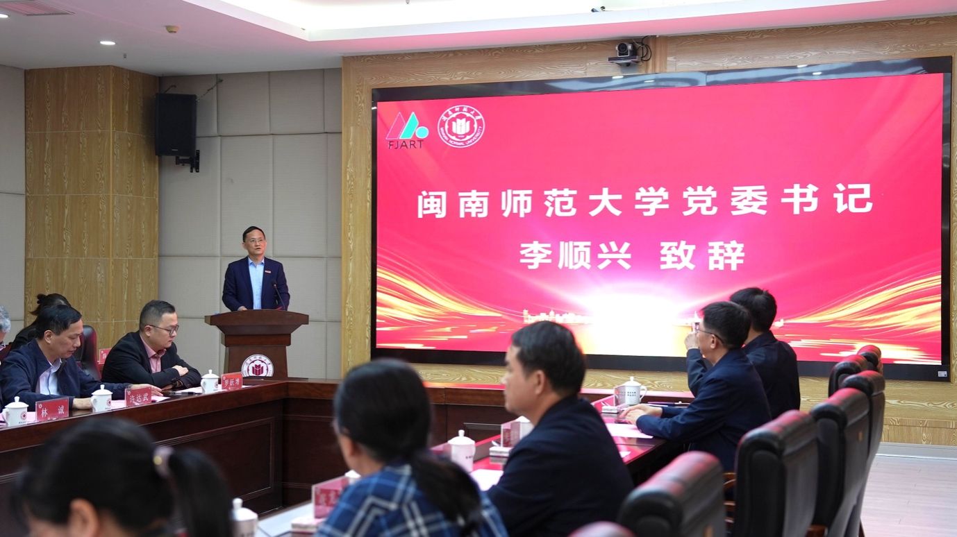11月28日上午,由福建省广播电视局与闽南师范大学共建的“海峡两岸微短剧产业学院”成立大会暨揭牌仪式在闽南师范大学科技楼举行。福建省广播电视局党组成员、副局长陈炎铭,闽南师范大学党委书记李顺兴,闽南师范大学党委副书记、校长张龙海等领导及来自省市相关部门、两岸影视业界二十余家知名机构负责人和高校师生代表出席活动。会议由闽南师范大学党委常委、副校长张宏怡主持。