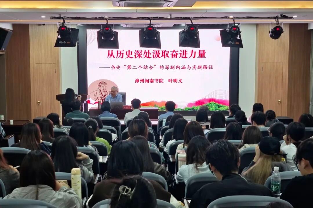 为深入贯彻落实新时代党的建设总要求和新时代党的组织路线,抓实新形势下党员队伍建设工作,深化入党积极分子思想淬炼与政治能力建设,夯实政治素养根基、强化党性修养,2025年11月14日,我院分党校举办第八期正式党员与第二十八期入党积极分子培训班,特邀请闽南日报社原总编辑、现任漳州闽南书院院长叶明义为培训班学员讲授《从历史深处汲取奋进力量——刍论“第二个结合”的深刻内涵与实践路径》专题党课。新闻传播学院全体师生党员、第二十八期入党积极分子培训班全体学员参加此次学习。