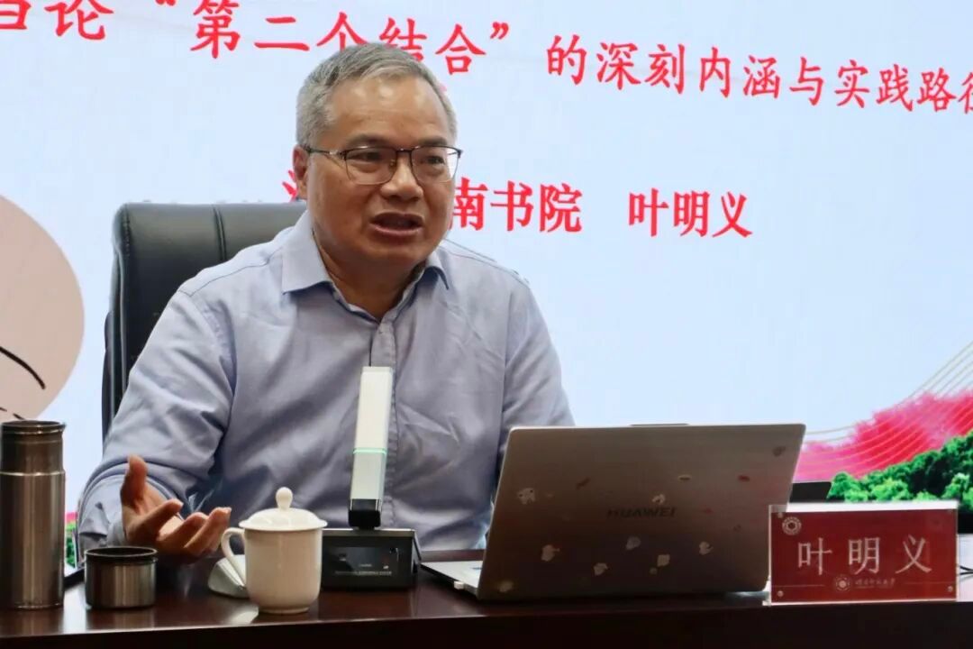 叶明义院长从文明互鉴的视角出发,指出以儒家思想为主流的东方文明所蕴含的多元、平等、和谐理念与马克思主义价值观具有高度契合性。他详细解读了“两个结合”的发展脉络,强调“第二个结合”作为新时代党的重要理论创新成果是又一次的思想解放,让马克思主义在中华优秀传统文化沃土中根深叶茂。他重点阐述了中华文明的连续性、创新性、统一性、包容性与和平性,指出“第二个结合”实现了共产主义信仰与中华民族千年理想的有机结合,推动了马克思主义中国化时代化的新飞跃,为实现中国式现代化提供了重要指引。