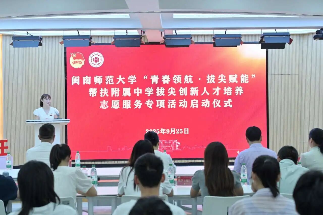 为深入贯彻落实立德树人根本任务,充分发挥我校青年学生的人才与智力优势,服务地方基础教育发展,为我校附属中学拔尖创新人才培养工作提供有力支持,9月25日下午,我校“青春领航·拔尖赋能”帮扶附属中学拔尖创新人才培养志愿服务专项活动启动仪式在达理学生活动中心三楼多功能厅顺利举行。校党委副书记廖志丹出席,社会合作处处长陈志宏、校团委副书记童娟、社会合作处副处长朱志成、附属中学校长林东兴,校团委相关负责人、各相关二级学院团委负责人、附属中学相关领导老师和专项志愿服务队志愿者代表参加了仪式。