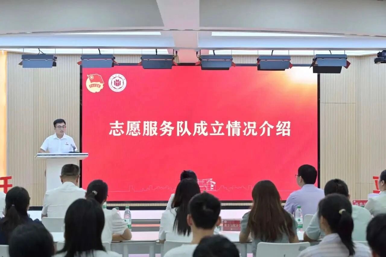 仪式上,校团委相关负责人介绍了“青春领航·拔尖赋能”专项志愿服务队的成立情况。随后,社合合作处处长陈志宏为专项志愿服务队授旗。